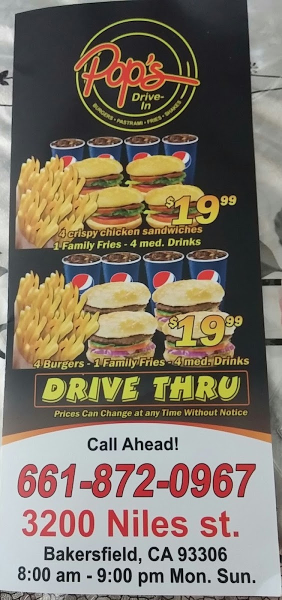 Pop's Drive-In Menu