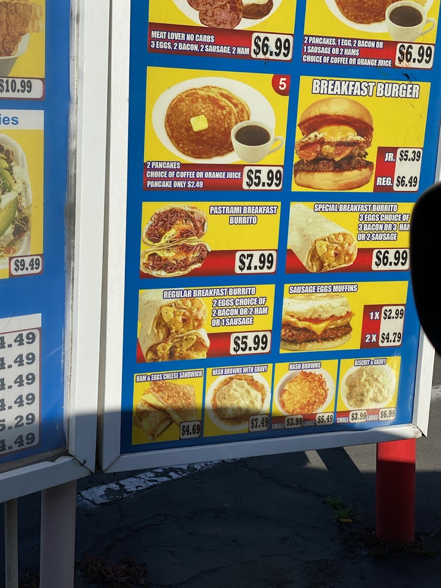 Highlights include the richly flavored Pastrami Sandwich, the creamy Avocado Burger Combo, and comforting options like Biscuits and Gravy or the Breakfast Plate. The menu also features indulgent choices such as the Chili Cheese Burger and a variety of shrimp and chicken dishes paired with crispy fries, offering something for different tastes and moments.